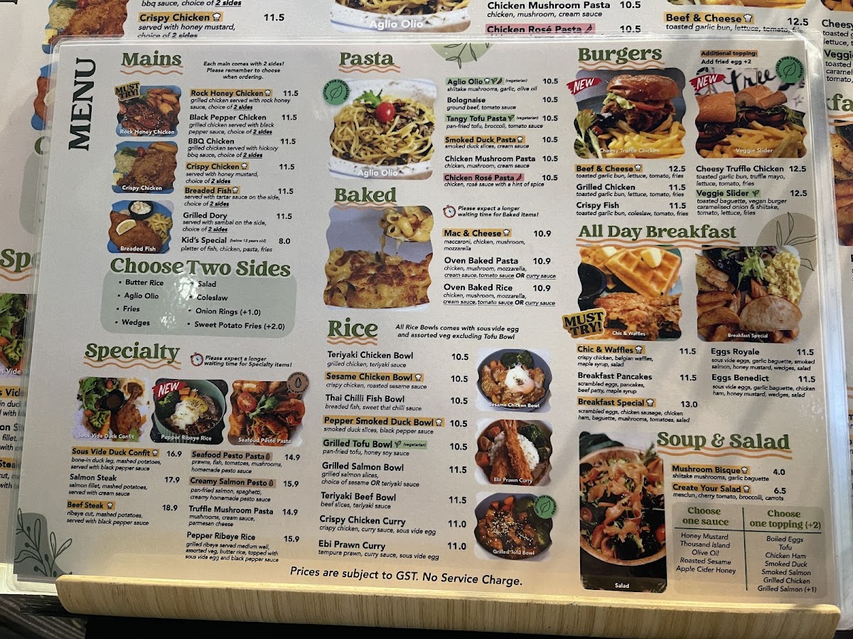 The menu at The Tree Cafe (Eastpoint) is thoughtfully organized to offer a variety of options suitable for casual dining, light meals, and snacks throughout the day. It includes sections for pasta and baked dishes, desserts, and savory snacks, providing choices that cater to different preferences.